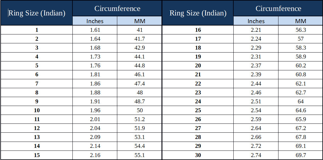 You can find the size chart in the next section (Please Scroll Down ↓↓) that will be extremely helpful for you to determine the ring size that you need. You can either make use of a tape or a small piece of string to measure the area that will be occupied by the ring.